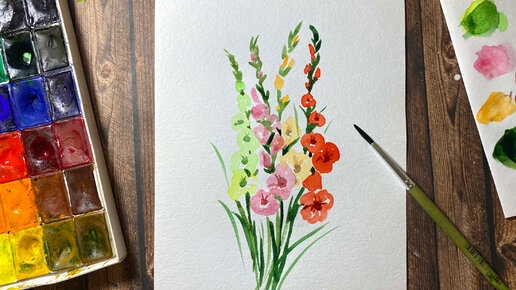 Легко и просто. Цветные гладиолусы акварелью. Рисование для начинающих