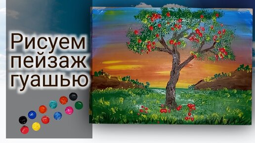 Как нарисовать пейзаж с яблоней. Рисуем просто и легко красками