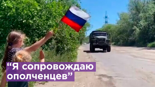 Юные жители Луганской Народной Республики приветствуют защитников Донбасса