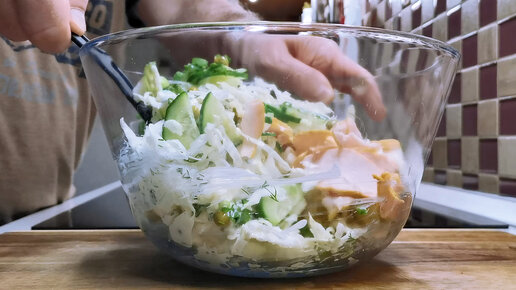 Сделали новый салат с капустой. Как закуска отлично и летний ужин можно заменить (рецепт с копченой курицей)