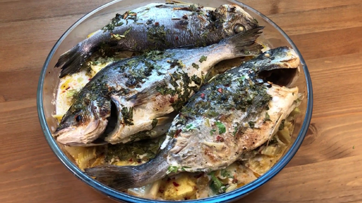 Дорадо, запеченная в кокосовом молоке, на подушке из ананаса.