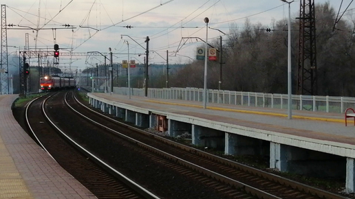 ЭД2Т проходит входные стрелки "с салютом" перед платформой "88 км"