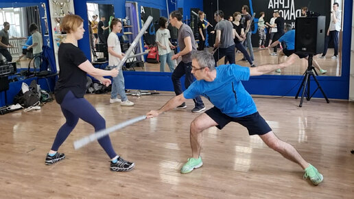 Японское фехтование катаной. Кендзюцу. Прием с катаной: удар финтом с переносом в нижний сектор вне соединения