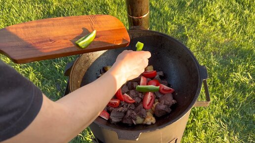 Сыновья готовят Pandasakhakids👦🏻👦🏻 Оленина с картошкой в казане на костре.