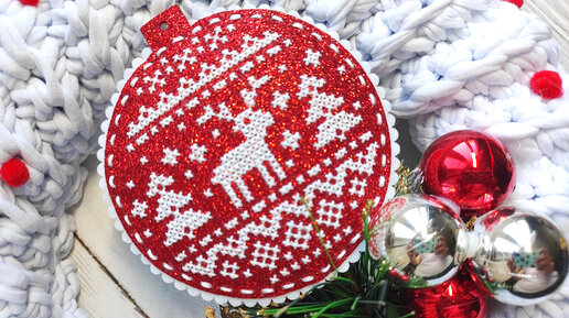 "Новогодний шар.Олень" МП-Студия. Вышивка на глиттированном фетре. Обзор новинки, сборка и готовая работа.