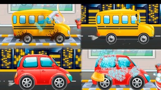 Мультики про машинки - Мойка машинки и школьного автобуса.