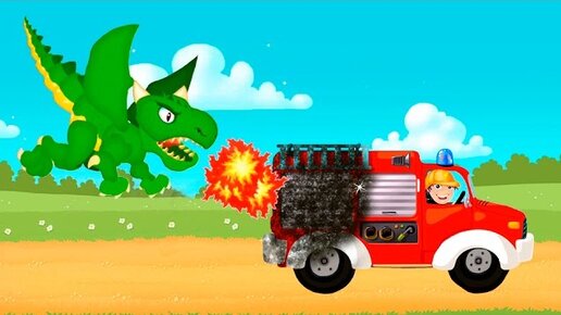 Мультики для детей про машинки - Пожарная машина и Дракон.