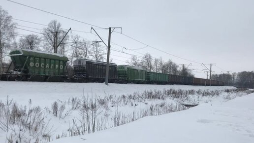 Зелёный электровоз ВЛ11М-166/167А с грузовым поездом