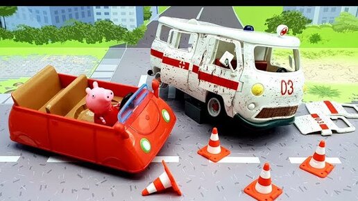 Мультики для детей с игрушками свинка Пеппа новые серии - Вправо влево! Видео про Скорую помощь Джип