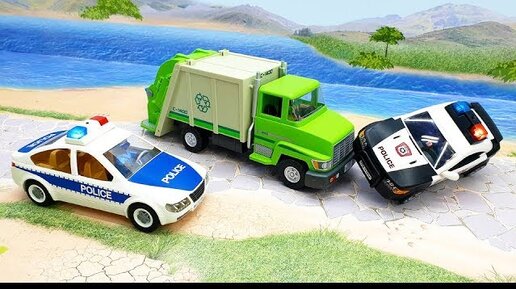 Полицейские машины и мусоровоз - Сообразительный мусорщик! погоня за мусоровозом