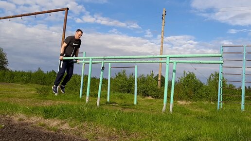 Тренировка за 10 мин лесенка на брусьях шаг через 2 сколько успеешь. Пробуй + обзор спорт.площадки на родном посёлке . 10.06.2022