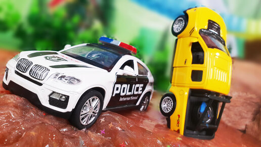 Мультики про машинки - Петрович и полицейские машинки спасают детей на опасном мосту