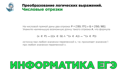 Информатика ЕГЭ. № 15. Преобразование логических выражений. Числовые отрезки. № 13364