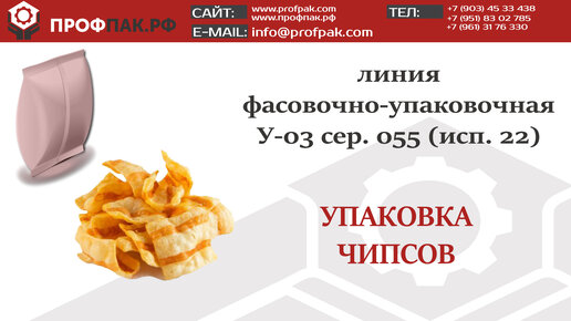 Фасовка и упаковка чипсов. Полностью автоматическая упаковочная линия У-03 сер. 055 (исп. 22)