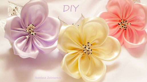 Простые цветы из ленты🌸 Повязка с цветком🌸 Handmade