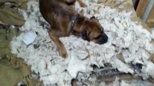 Представляю вашему вниманию, топчанчик! Или, что собаки немецкий боксер и шарпей, сделали с диваном!
