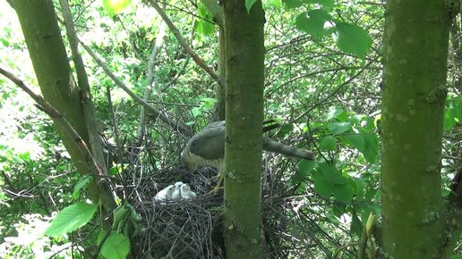 Ястреб-перепелятник кормит птенцов