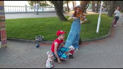 Исполнение женщиной мелодии на скрипке в городе Геленджике, на центральной набережной