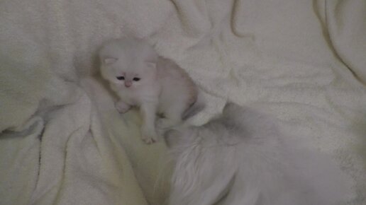 Пустили маленького котенка на кровать, мама кошка в расстройстве