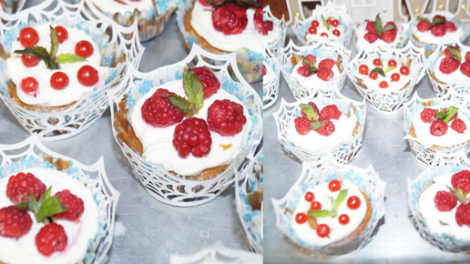 КАПКЕЙКИ С МАЛИНОЙ И ТВОРОЖНЫМ КРЕМОМ