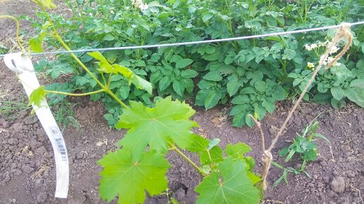 Далее: подвязываем молодые саженцы винограда из укорененных черенков