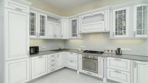 Обзор просторной кухни 40 м2 в классическом стиле c шикарными витражами