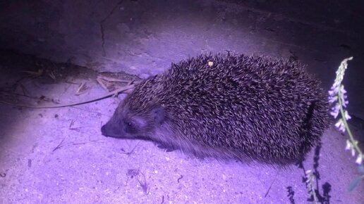 Дикие животные Крыма. Ёжик ночью лазает у моря в поисках еды