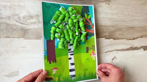 Летние поделки, аппликации для детей на летнюю тематику, березка, поделка своими руками с шаблонами для распечатки для детей