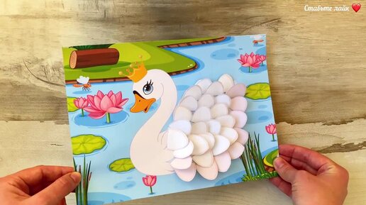 Делаем лебедя. Объёмная аппликация из бумаги птицы, поделки с детьми, своими руками для детского творчества и развития, для занятий в садик.