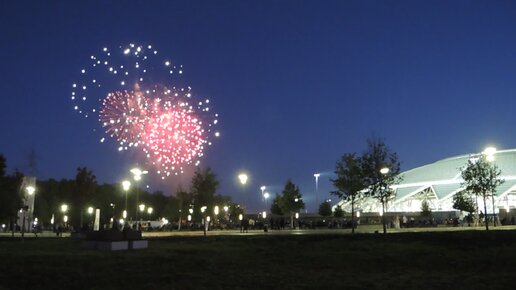 Самара • День России 2022. Праздничный салют около стадиона «Самара Арена».