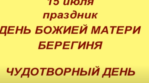 15 июля - День Божией Матери. День Богини Берегини. Чудотворный день. Народные приметы и традиции.