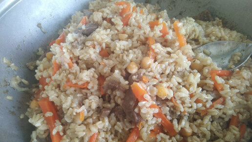 Плов с говядиной. На мой взгляд плов постный, в говядине очень мало жира