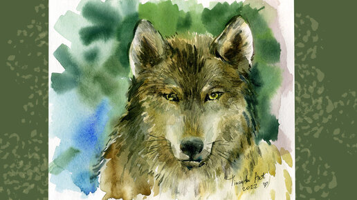 Рисунок вольного серого волка, акварель
