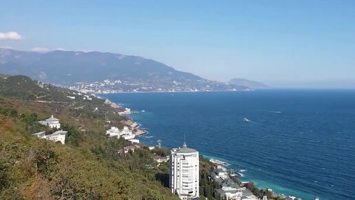 Ялта, Солнечная тропа, красивый вид с высоты. Сильный ветер заглушает звук