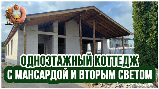 ОДНОЭТАЖНЫЙ КОТТЕДЖ ИЗ ГАЗОБЛОКА С МАНСАРДОЙ И ВТОРЫМ СВЕТОМ.