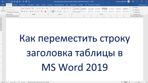 Как переместить строку заголовка таблицы в MS Word 2019