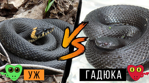 Как отличить ужа от гадюки / Учимся отличать неядовитую змею от ядовитой