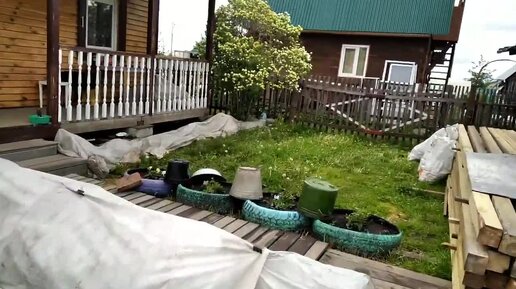 4 июня 2022г. Дача после заморозков. Соседи привезли сруб для бани.