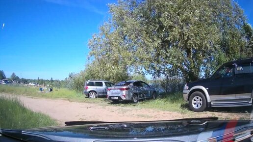 Смоляне на пляже озера Ольшанские Карьеры в праздник День России.