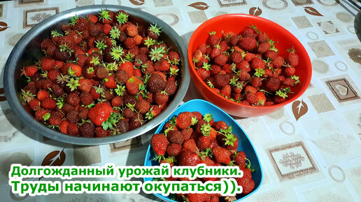 Первый урожай клубники. Наши труды наконец начали приносить плоды.