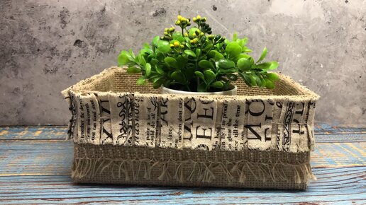 Взяла джутовый мешок и коробку и сделала новую корзину для хранения.