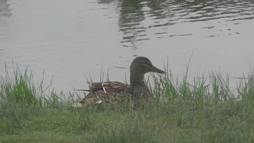Это Курск. Рано утром встретил уточку с утятами на Ермошкином озере. А когда монтировал видео, заметил, что она хромает