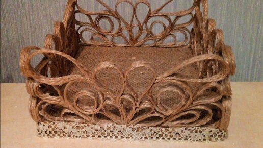 Корзинка из джута и мешковины_ Джутовая филигрань_ Поделки из джута