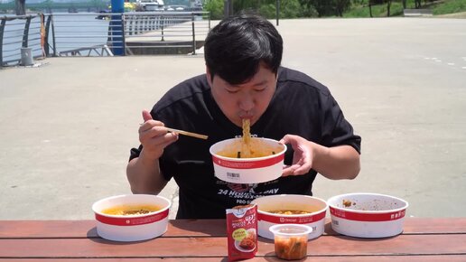 Мукбанг с острой лапшой быстрого приготовления на реке Хан - кулинарное шоу Мукбанг