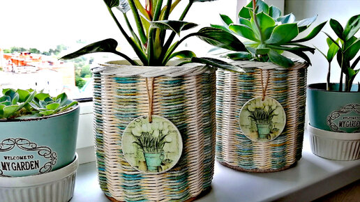 Сначала они мне НЕ ПОНРАВИЛИСЬ, но когда доделала - я влюбилась в эти ПОЛОСАТЫЕ КАШПО для цветов