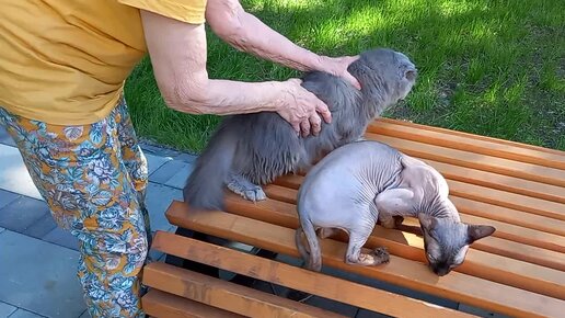 Прогулки с кошками в сквере.Соломон и Сапфира