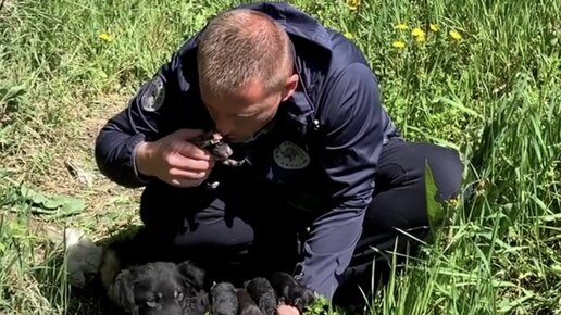 Эту маму-собаку по праву можно назвать героиней, ведь она укрывала своих щенков от палящего солнца