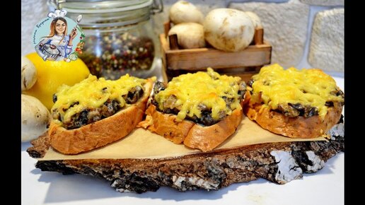 Бутерброд с грибами. Рецепт бутерброда с сыром. Горячий бутерброд.