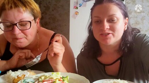 Мукбанг/ с мамой Наташей/ Ужин после рабочего дня/ селедочка , салат, рис с кукареку/