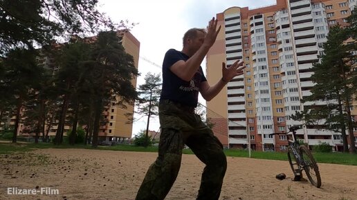 Полный авторский вариант рукопашной разминки деда-Шурави и падения камеры после удара ребром руки